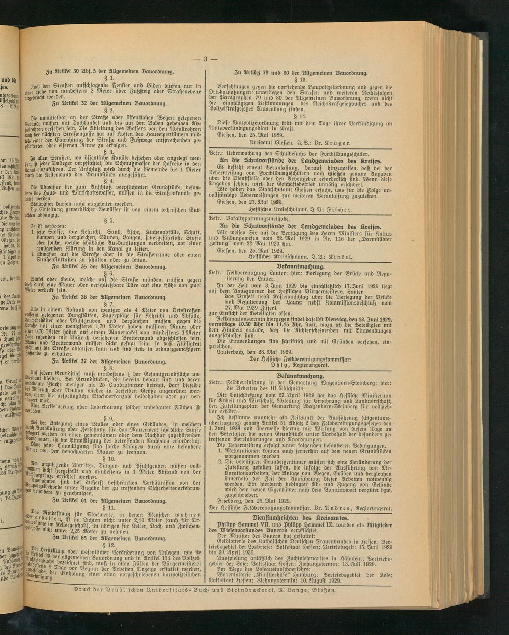 Wir weisen Sie auf die Verfügung des Herrn Ministers für Kultus und Bildungswesen vom 22. Mai 1929 in Nr. 116 der „Darmstädter Zeitung" vom 22. Mai 1929 hin.