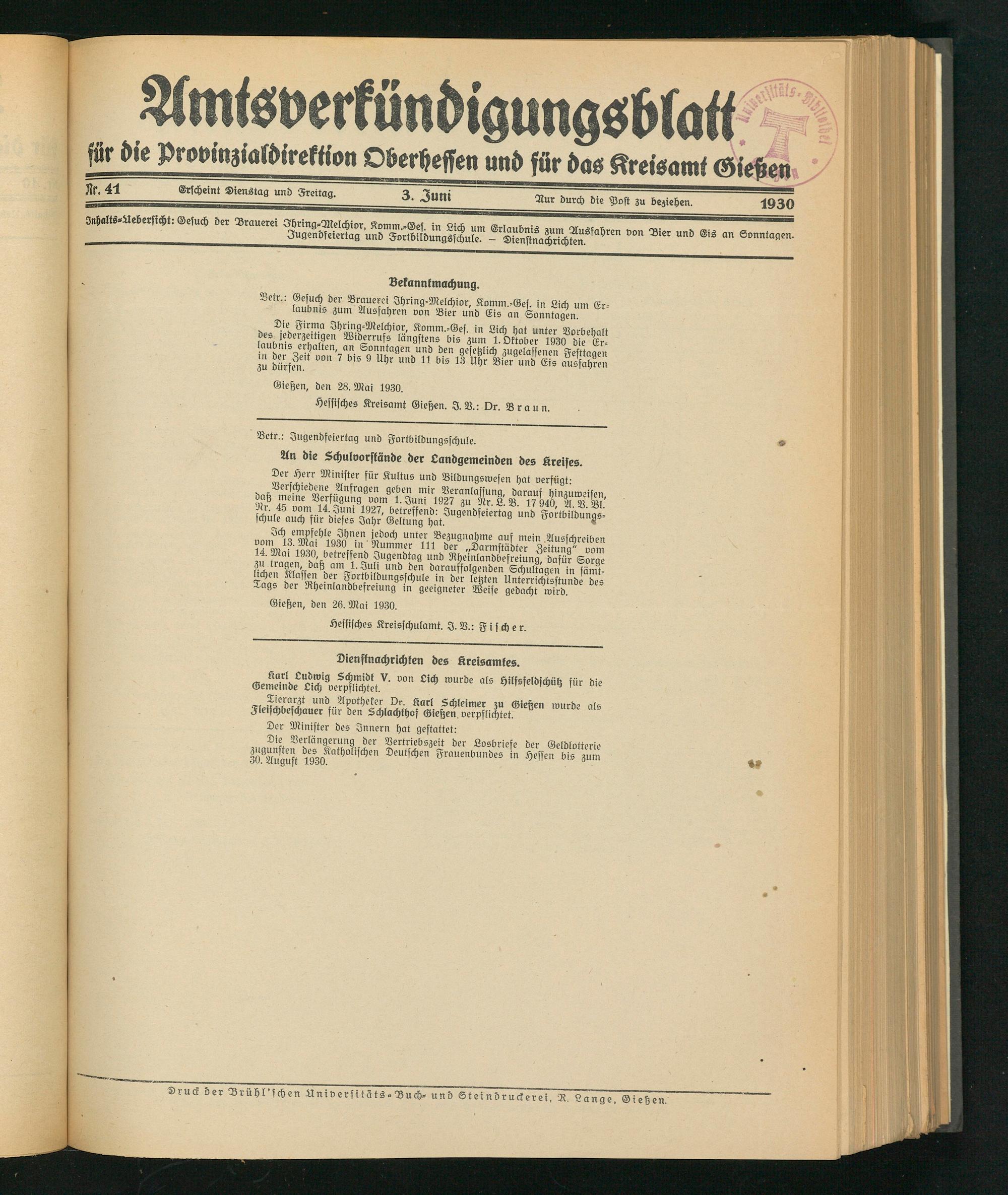 Gießen, den 28. Mai 1930.