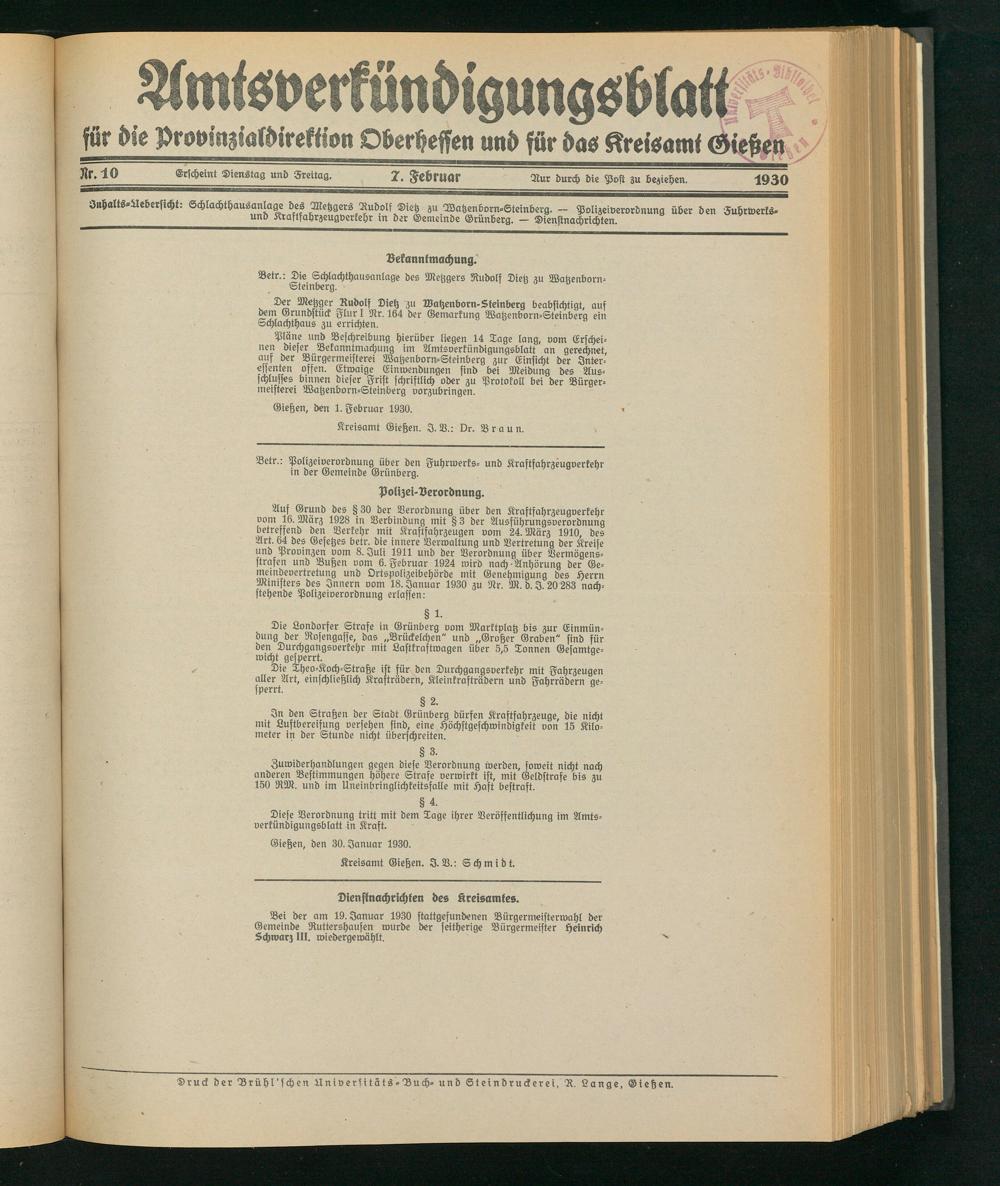 Gießen, den 30. Januar 1930.