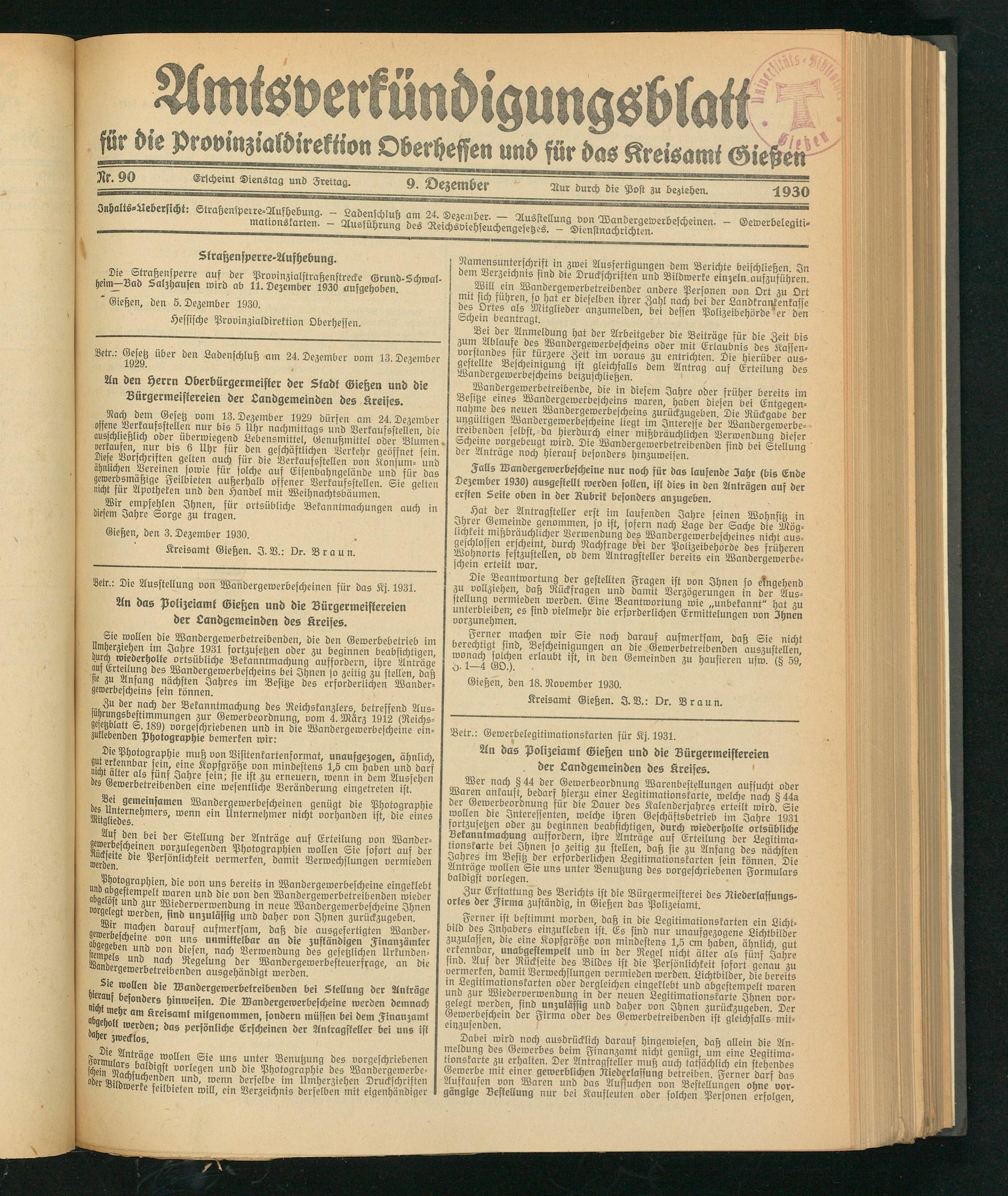 Gießen, den 3. Dezember 1930.