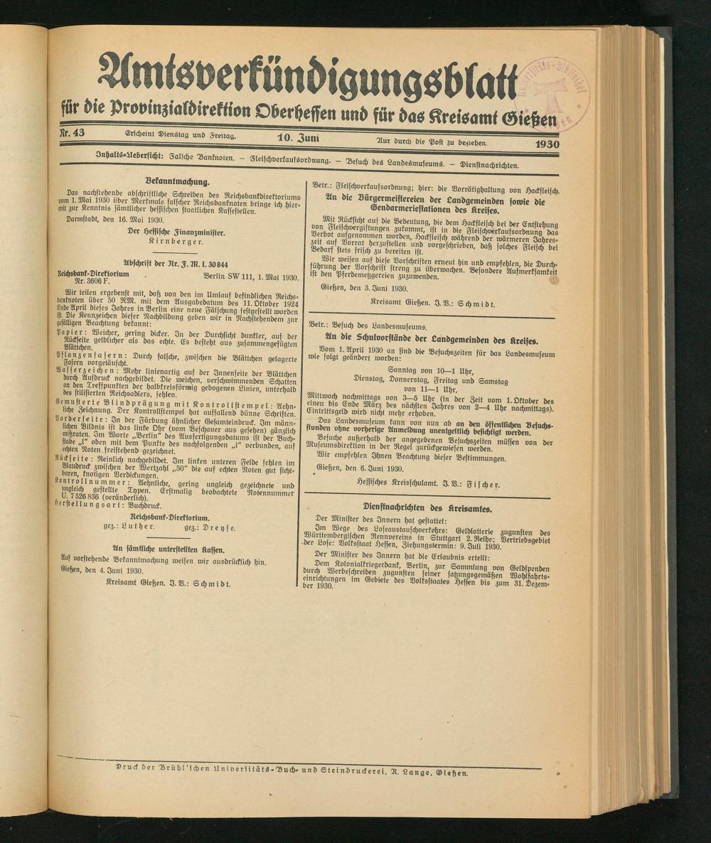 Auf vorstehende Bekanntmachung weisen wir ausdrücklich hin. Gießen, den 4. Juni 1930.