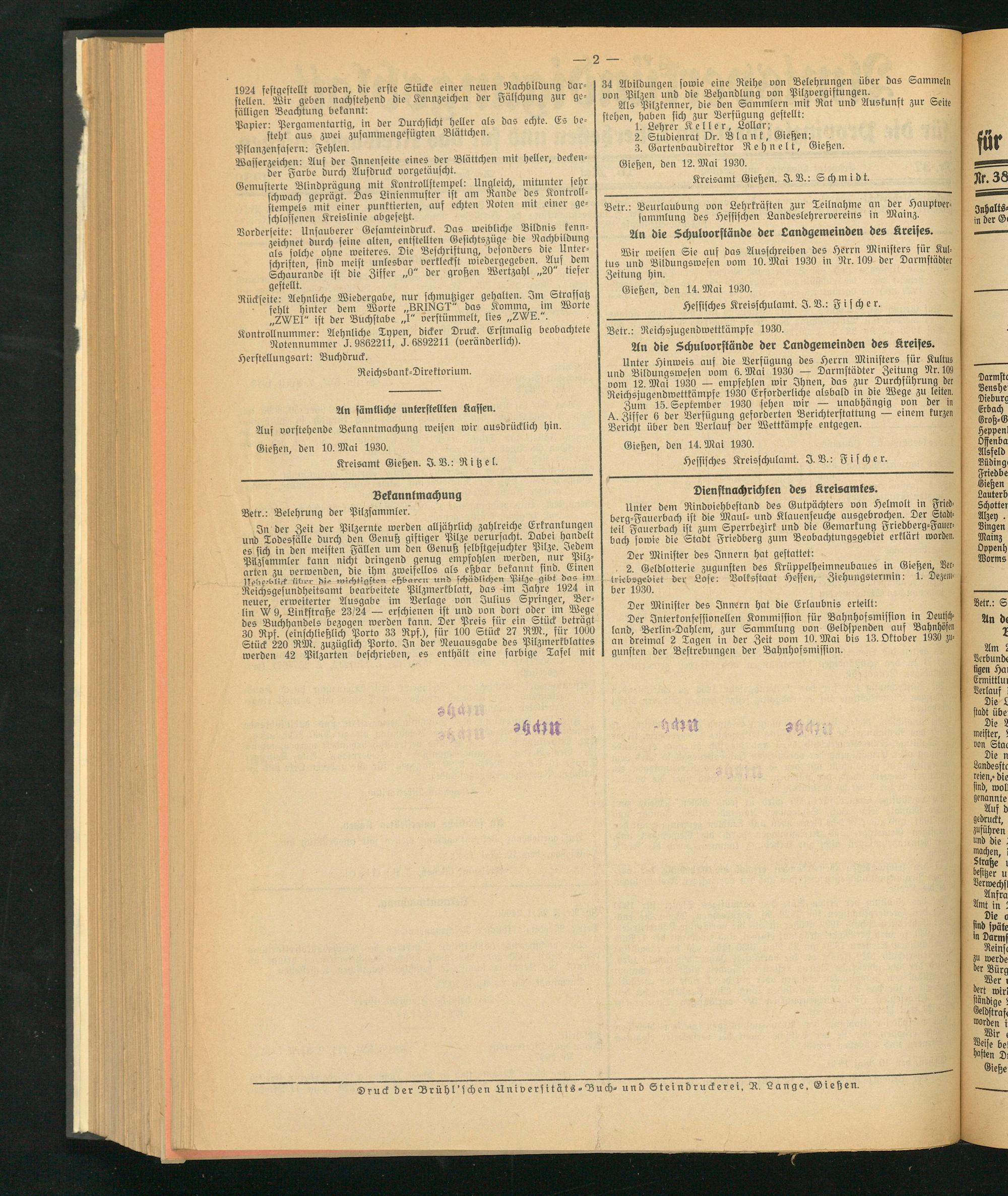 Wir weisen Sie auf das Ausschreiben des Herrn Ministers für Kultus und Bildungswesen vom 10. Mai 1930 in Nr. 109 der Darmstädter Zeitung hin.