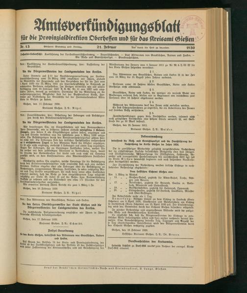 Gießen, den 17. Februar 1930.