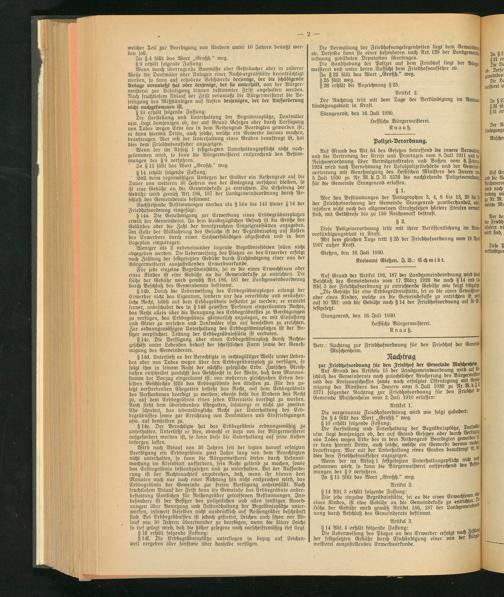 §146. Unterließ es der Berechtigte in rechtsgültiger Weise unter Lebenden oder von Todes wegen über den Erbbegräbnisplatz zu verfügen, so folgt ihm in seinem Recht der nächste gesetzliche Erbe. Zwischen Gleich- nahen entscheidet zunächst das Geschlecht in der Weise, daß dem Mannes- stamm der Vorzug eingeräumt ist; von mehreren gleichnahen Erben desselben Geschlechts fällt das Erbbegräbnis den ältesten zu. Für den zuletzt versterbenden Ehegatten besteht das Recht, auf dem Erbbegräbnis des Verstorbenen beerdigt zu werden; ebenso steht den Kindern das Recht zu, auf dem Erbbegräbnis eines jeden Elternteils beerdigt zu werden. Auch steht dem überlebenden Ehegatten, infolange er nicht zur zweiten Ehe schreitet, das lebenslängliche Recht zur Unterhaltung des Erbbegräbnisses sowie zur Errichtung von Denkmälern und Einfriedigungen usw. aus demselben zu.