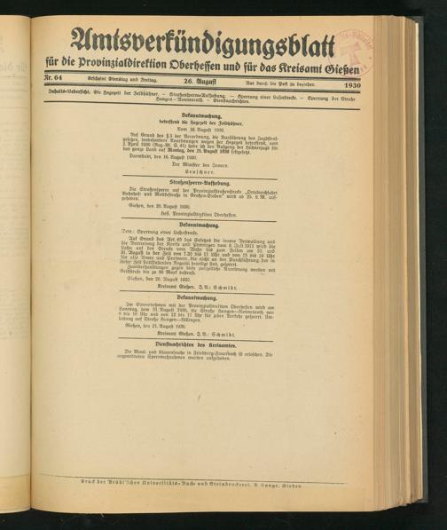 _____________ Kreisamt Gießen. I. 33.: Schmidt.