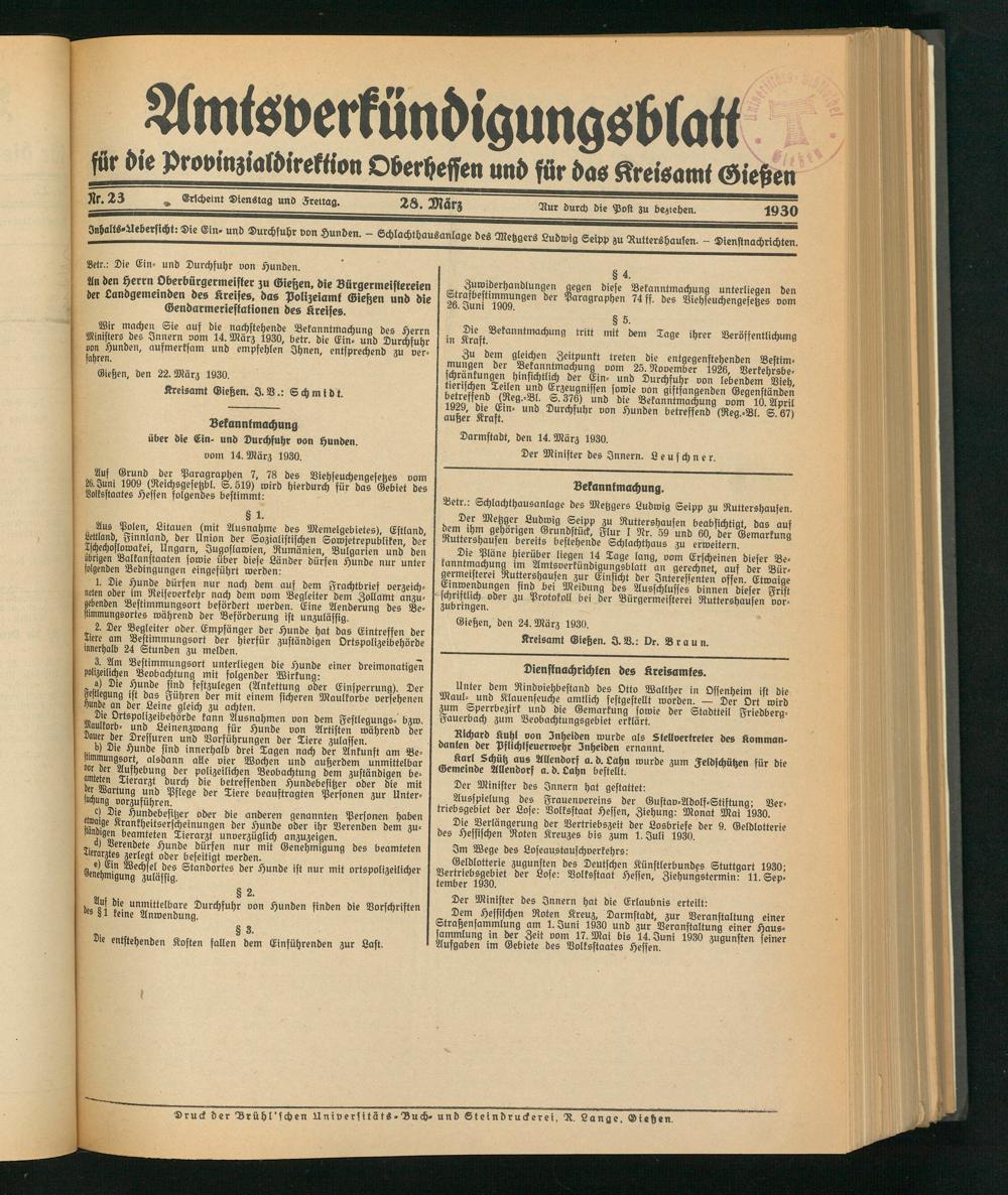 Gießen, den 24. Mürz 1930.