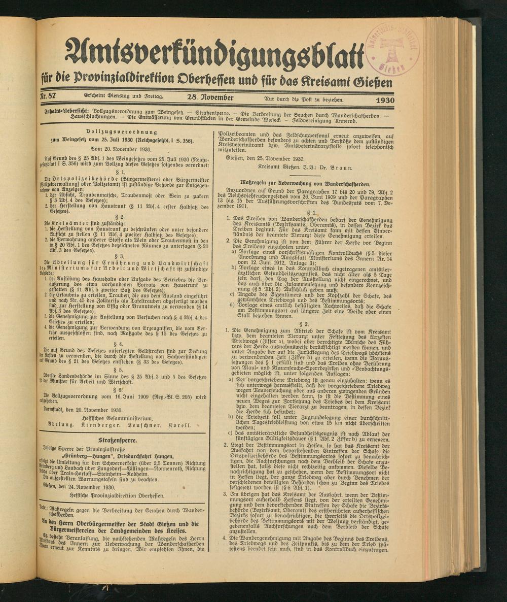 Kreisamt Gießen. 3.33.: Dr. Braun.