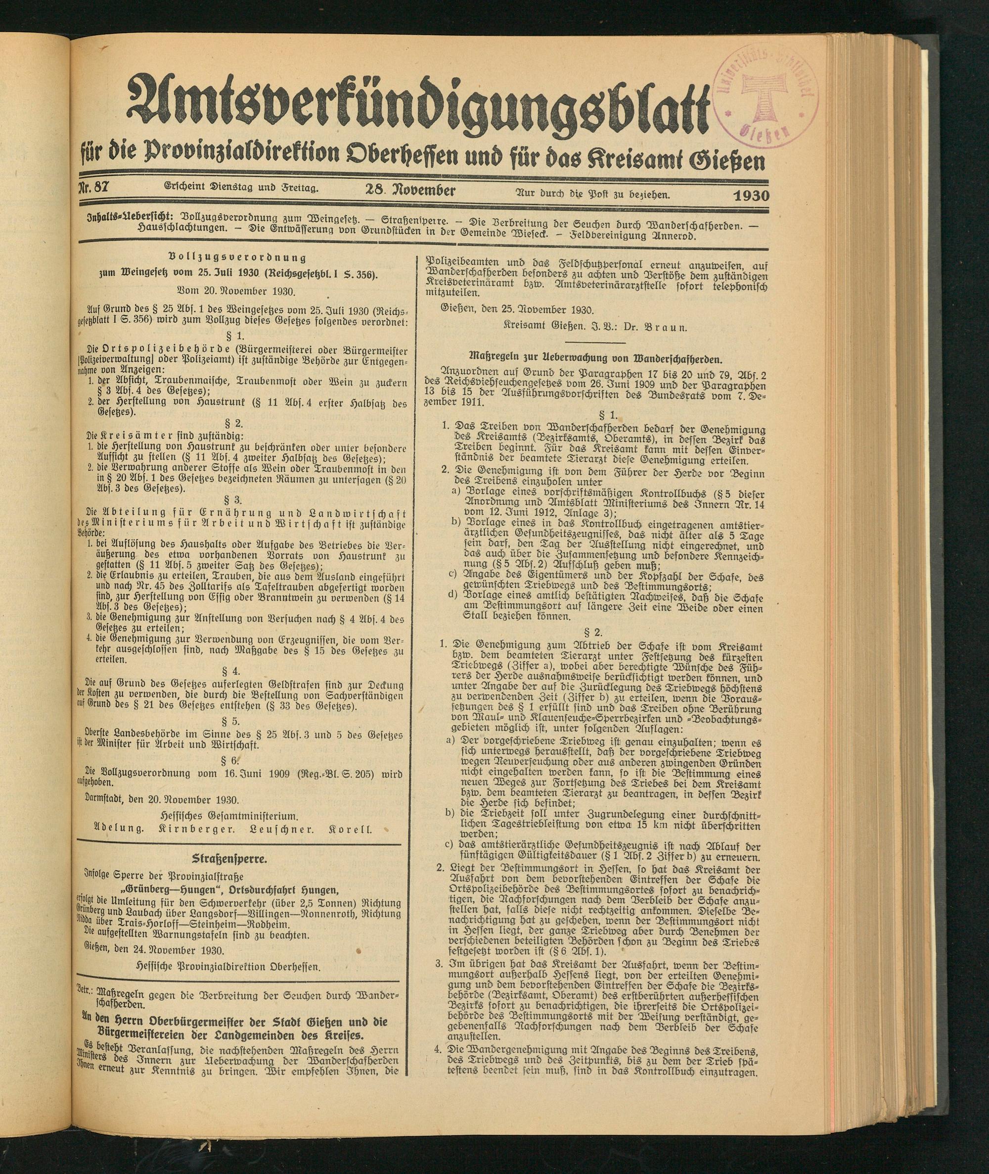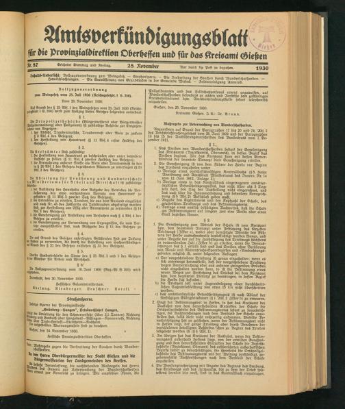ßr -ie provmziawirektion Oberheffen und für das Kreisamt Gießen