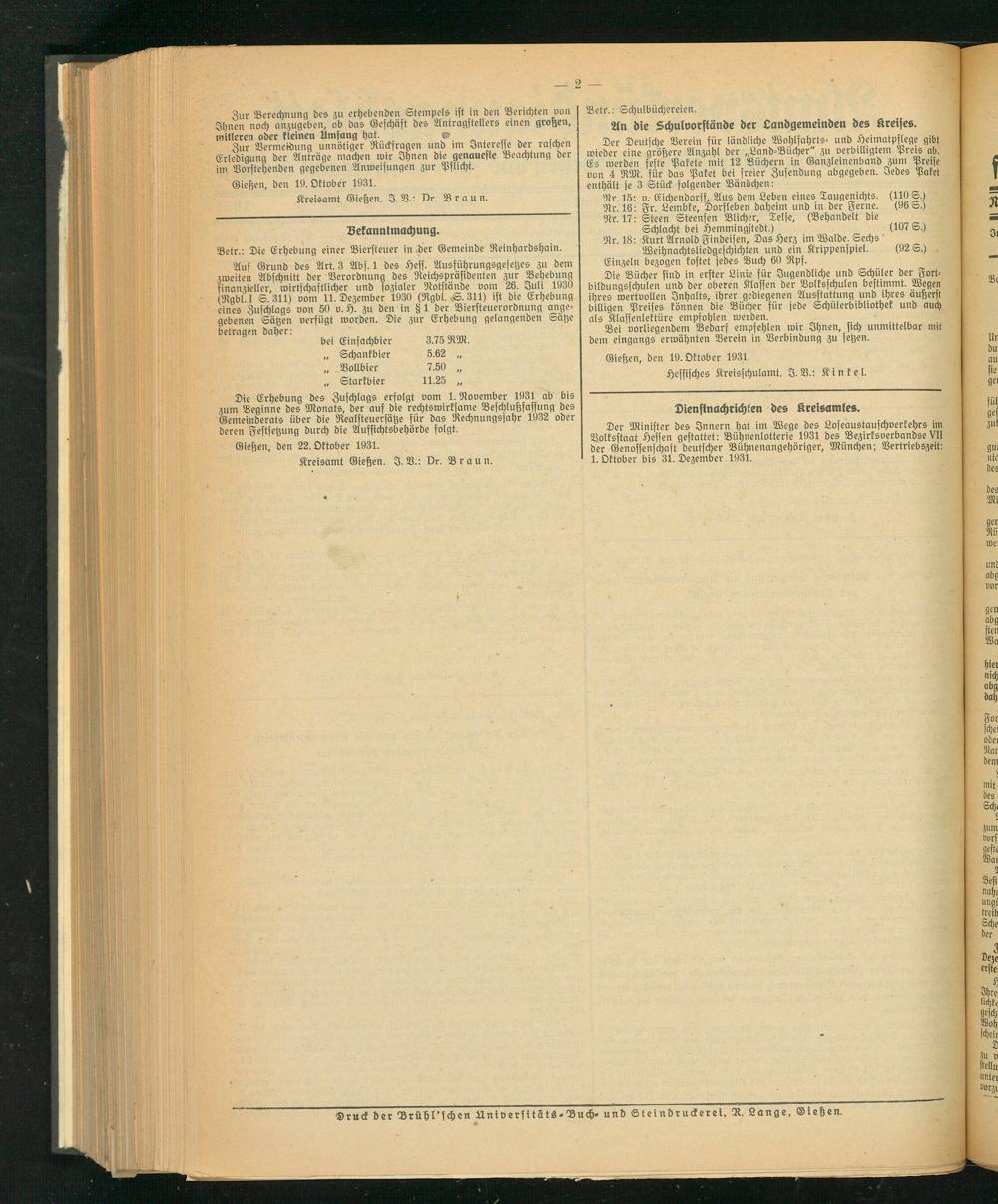 Kreisamt Gießen. I. V.: Dr. Braun.
