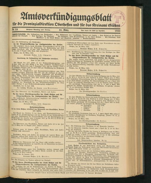 Gießen, den 30. März 1931.