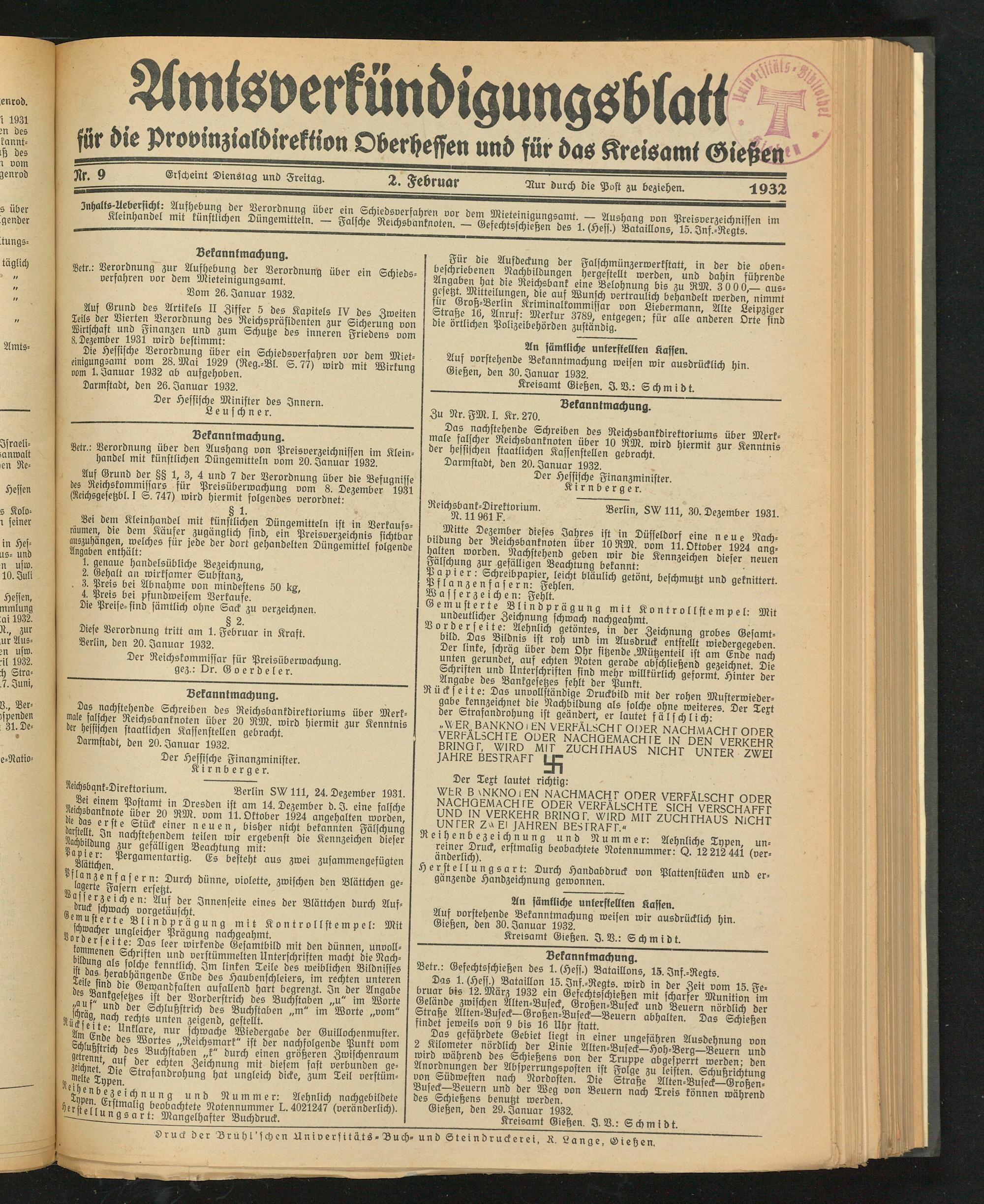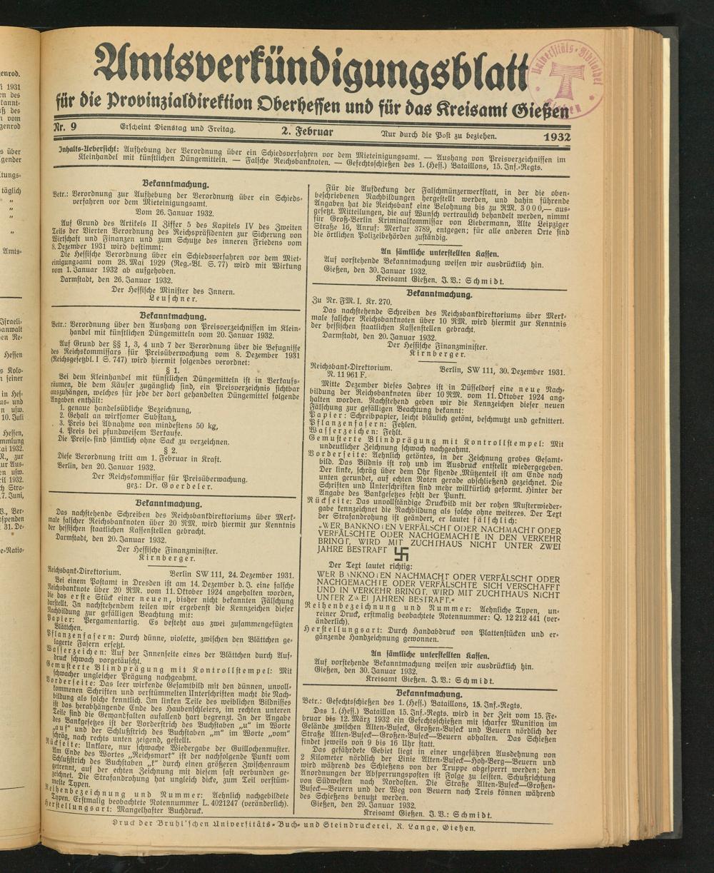 Auf vorstehende Bekanntmachung weisen wir ausdrücklich hin Gießen, den 30. Januar 1932.