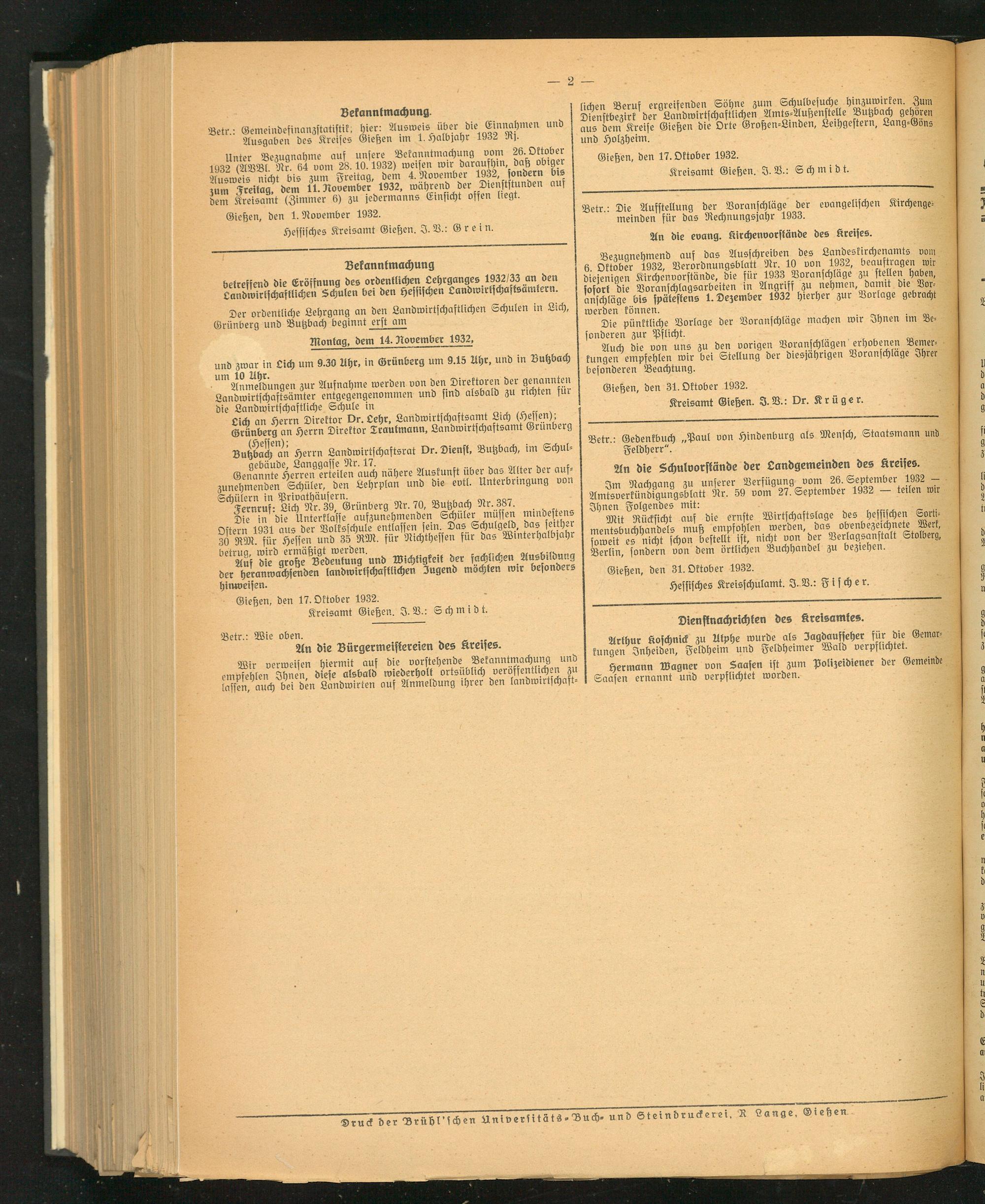 Gießen, den 1. November 1932.
