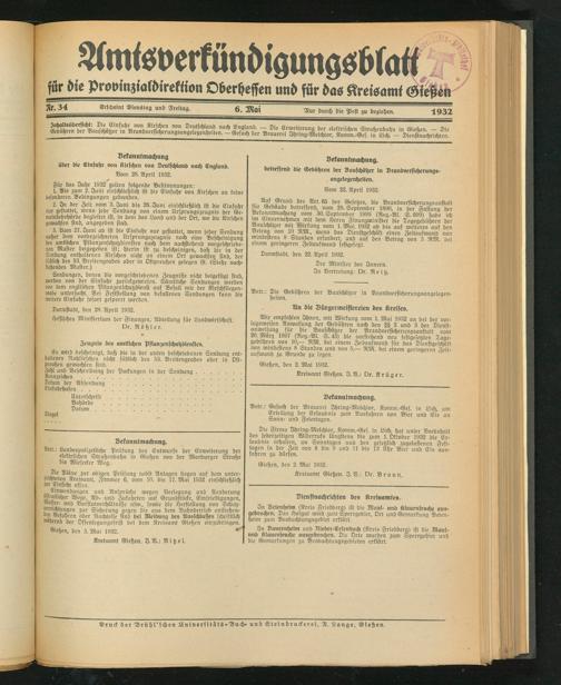 Kreisamt Gießen. I. 23.: Dr. Krüger.