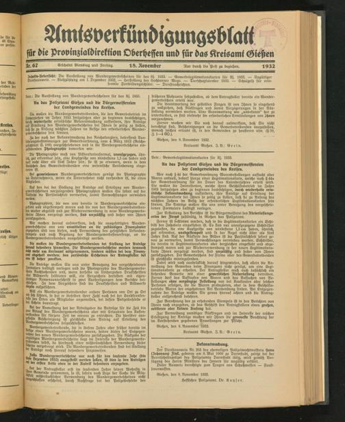 für die provinzialdirekiion Oberheffen und für das Kreisamt Gießen