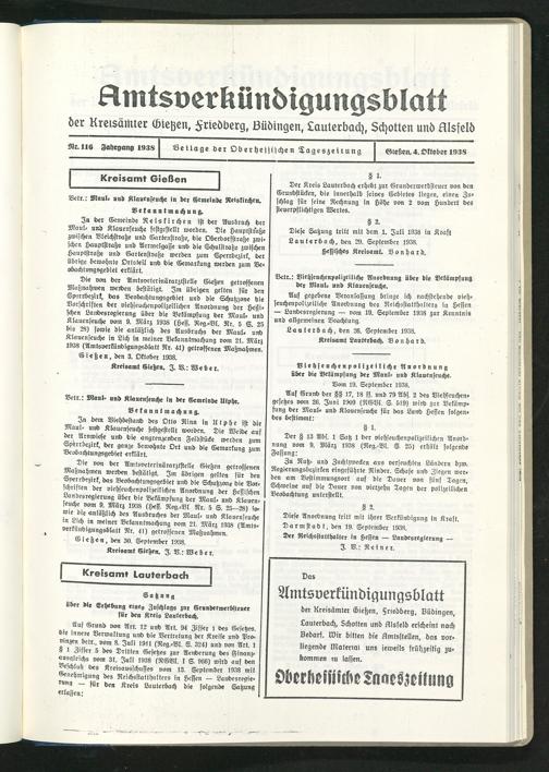 Diese Anordnung tritt mit ihrer Verkündigung in Kraft. Darmstadt, den 19. September 1938.