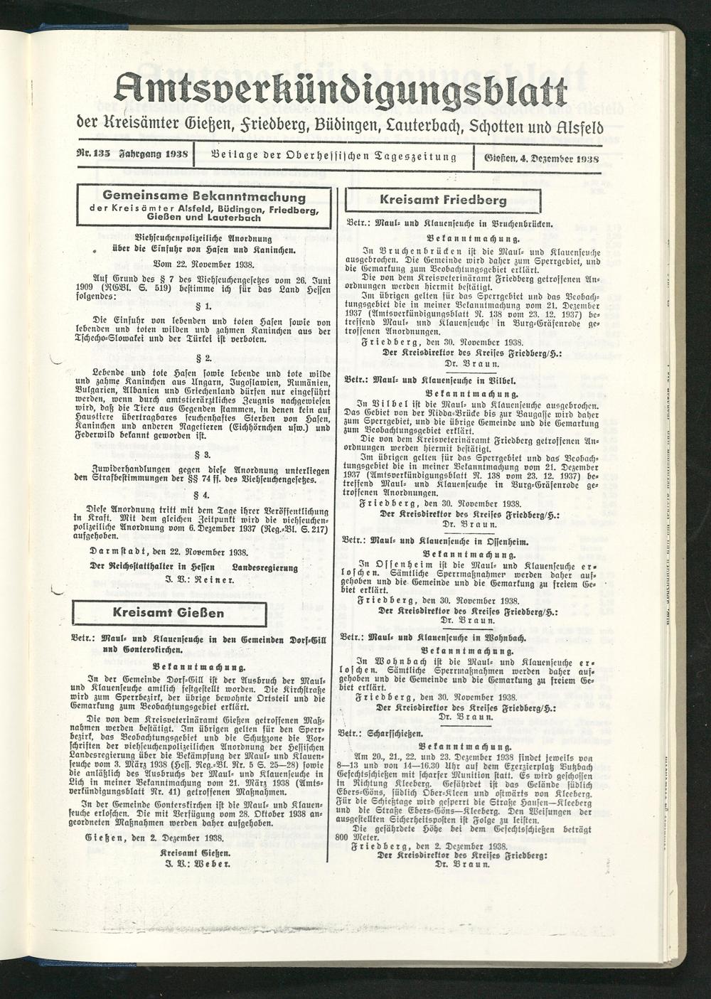 Der Kreisdirektor des Kreises Friedberg/H.: Dr. Braun.