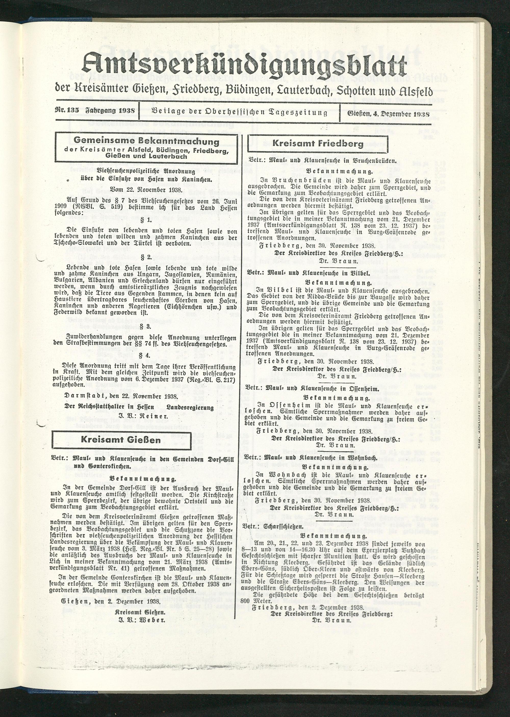 Friedberg, den 2. Dezember 1938.