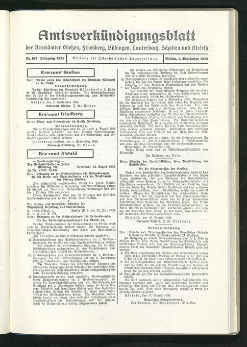 Gießen, den 3. September 1938.