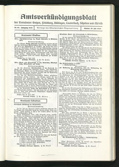 Hessisches Kreisamt Schotten. I. V.: Burk.