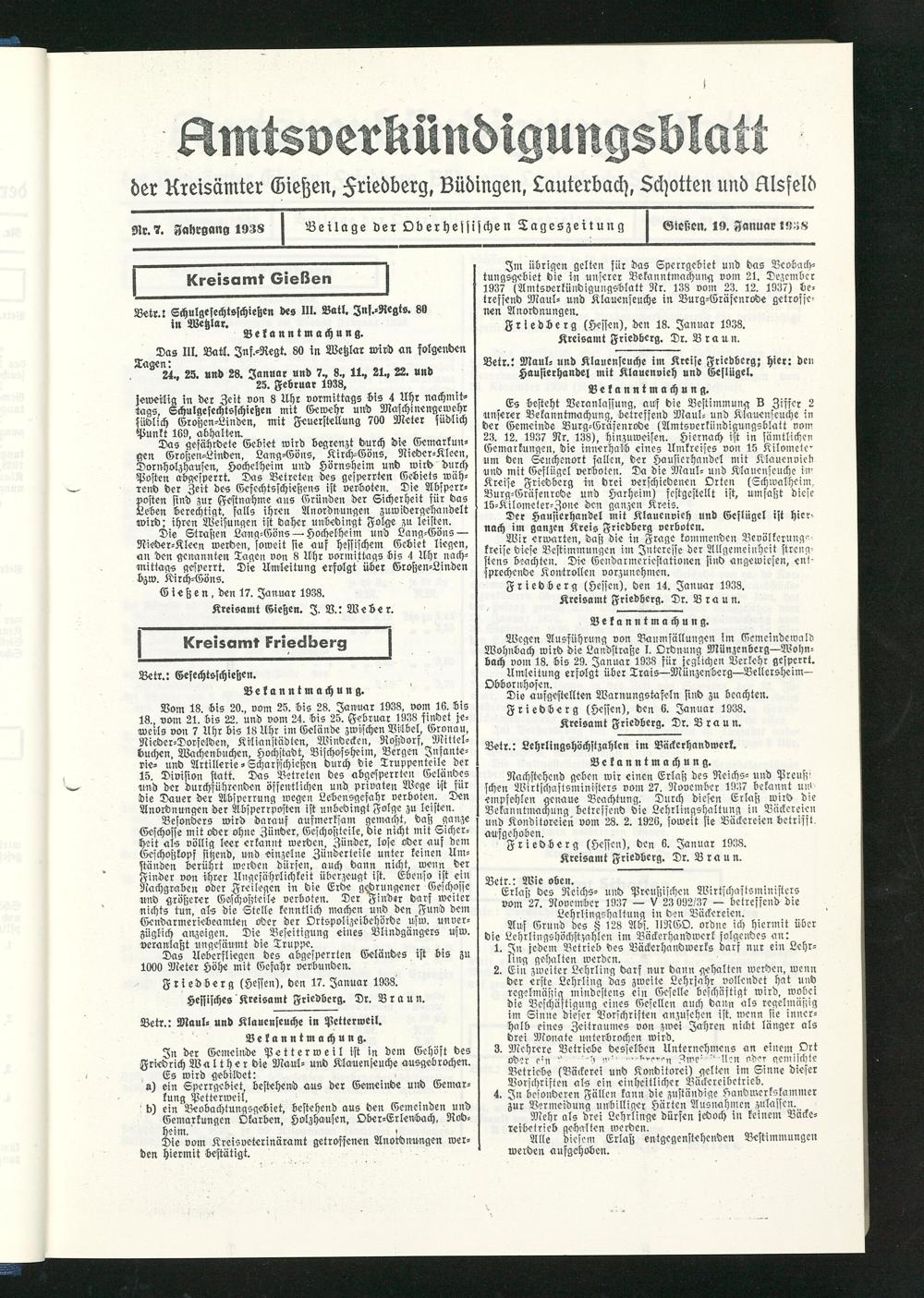 Beilage der Oberhessischen Tageszeitung Gießen. 19. Januar 1938