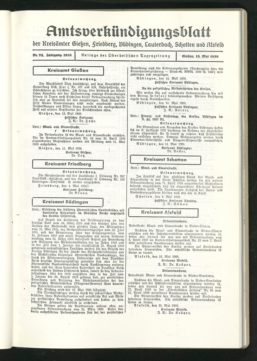 Alsfeld, den 12. Mai 1938.