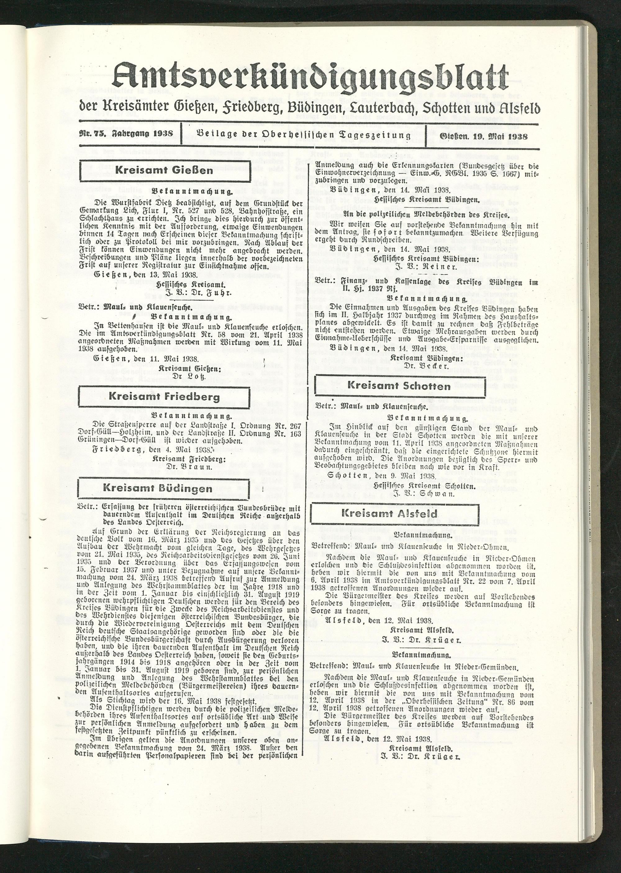 Schotten, den 9. Mai 1938.
