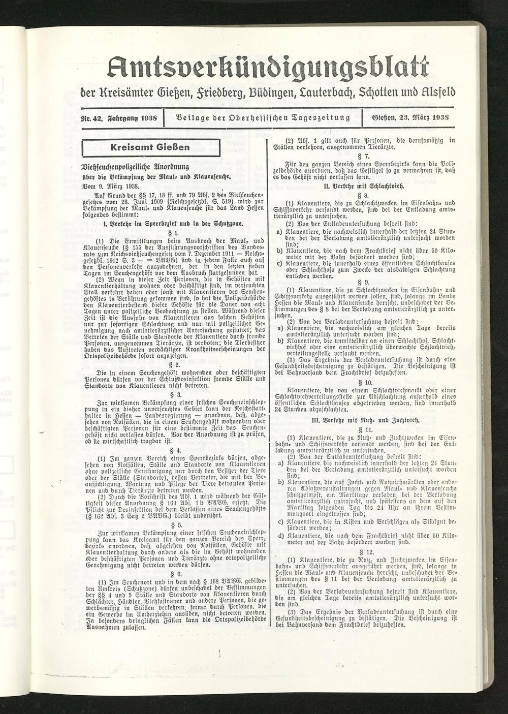 91t.42. Aahrgang 1938 Beilage der Oberhessischen Tageszeitung Gießen. 23. März 1938