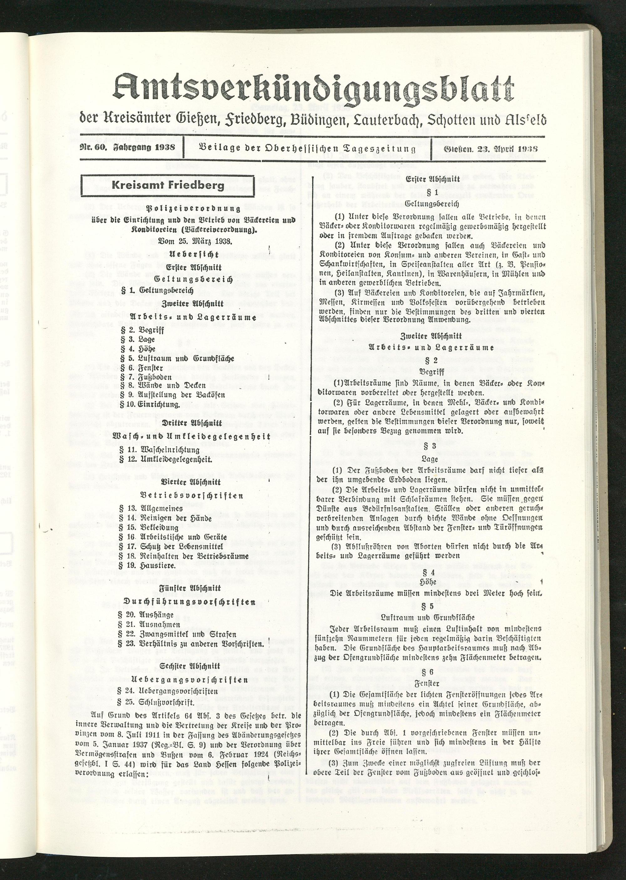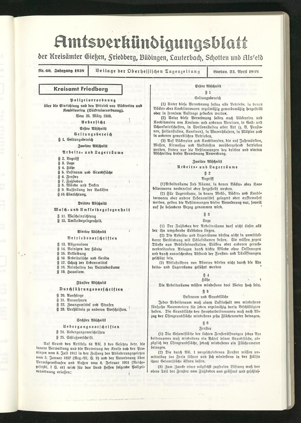 91r.60. Aaürgang 1938 Beilage der Oberhessischen Tageszeitung Meßen. 23. Mrr- 1938