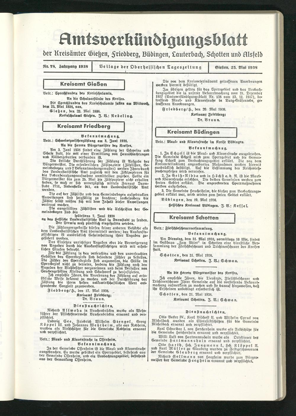 Schotten, den 21. Mai 1938.