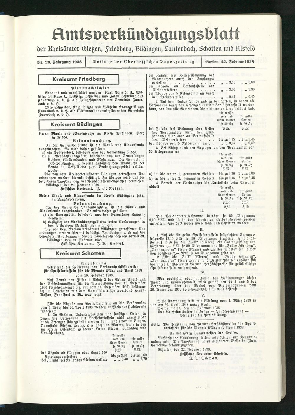 Büdingen, den 25. Februar 1938.
