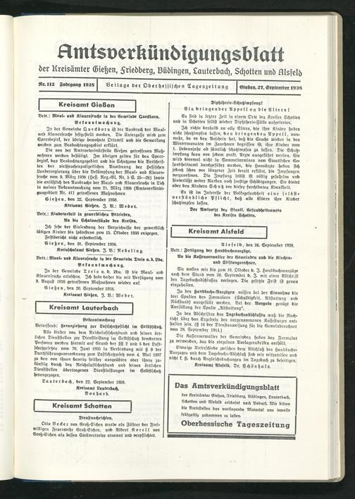 91C.112 Jahrgang 1938 Beilage der Oberhefsischen Tageszeitung Gießen,27.September 1938