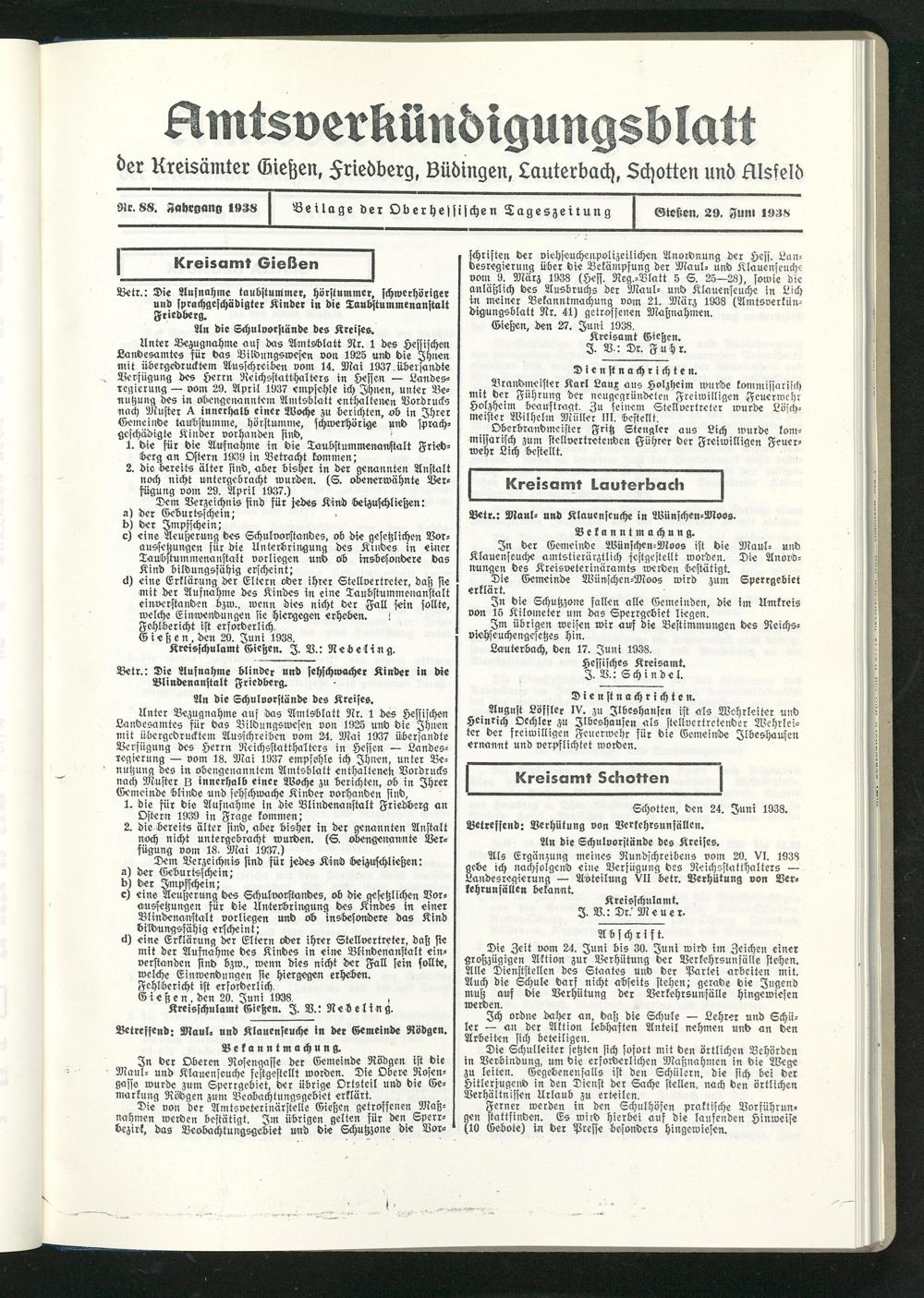 Schotten, den 24. Juni 1938.
