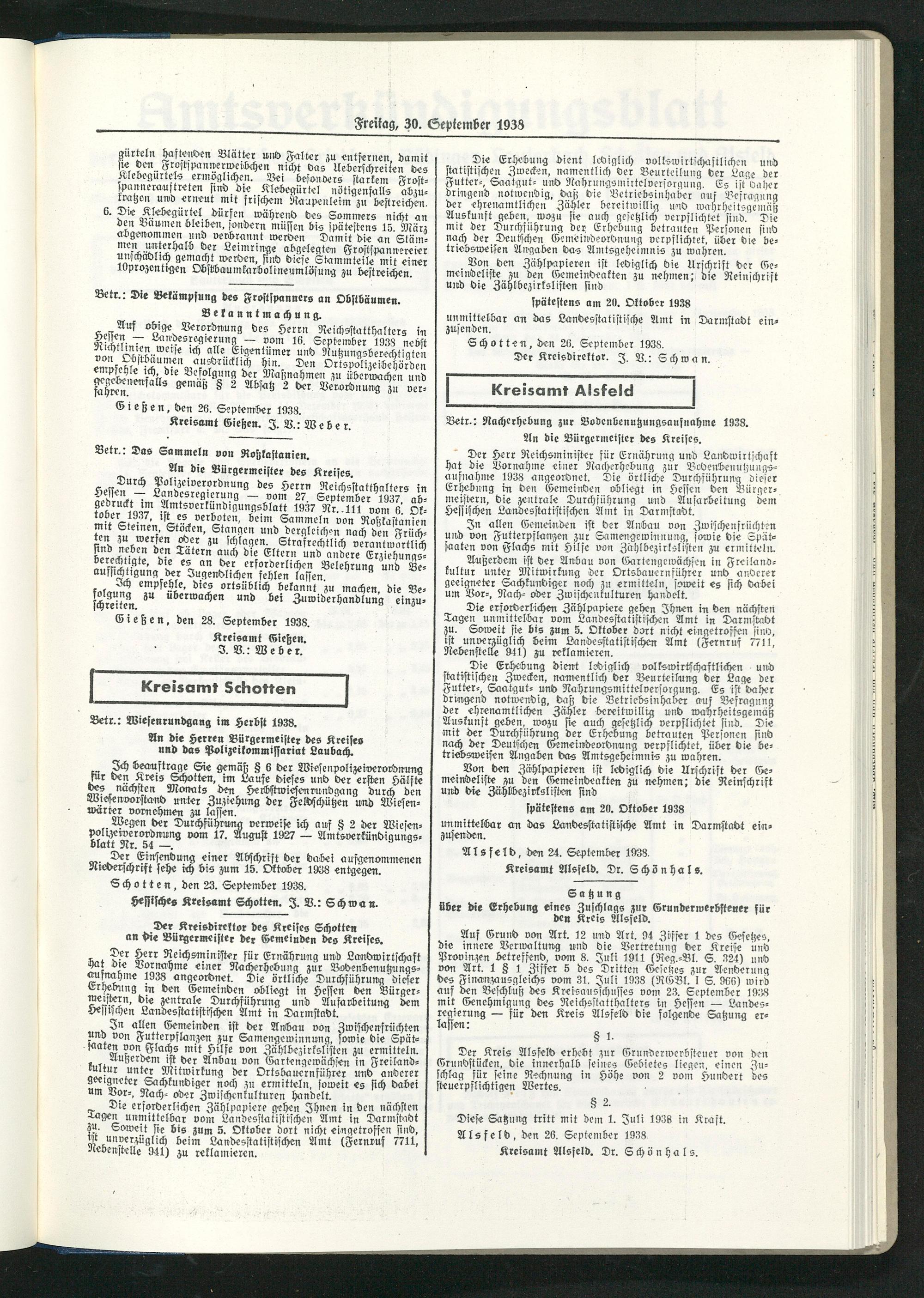 obiHe Verordnung des Herrn Reichsstatthalters in S — Landesregierung — vom 16. September 19,38 nebst ÄW* Li SSS MWÄSA WWW ä Gießen, den 26. September 19,38.