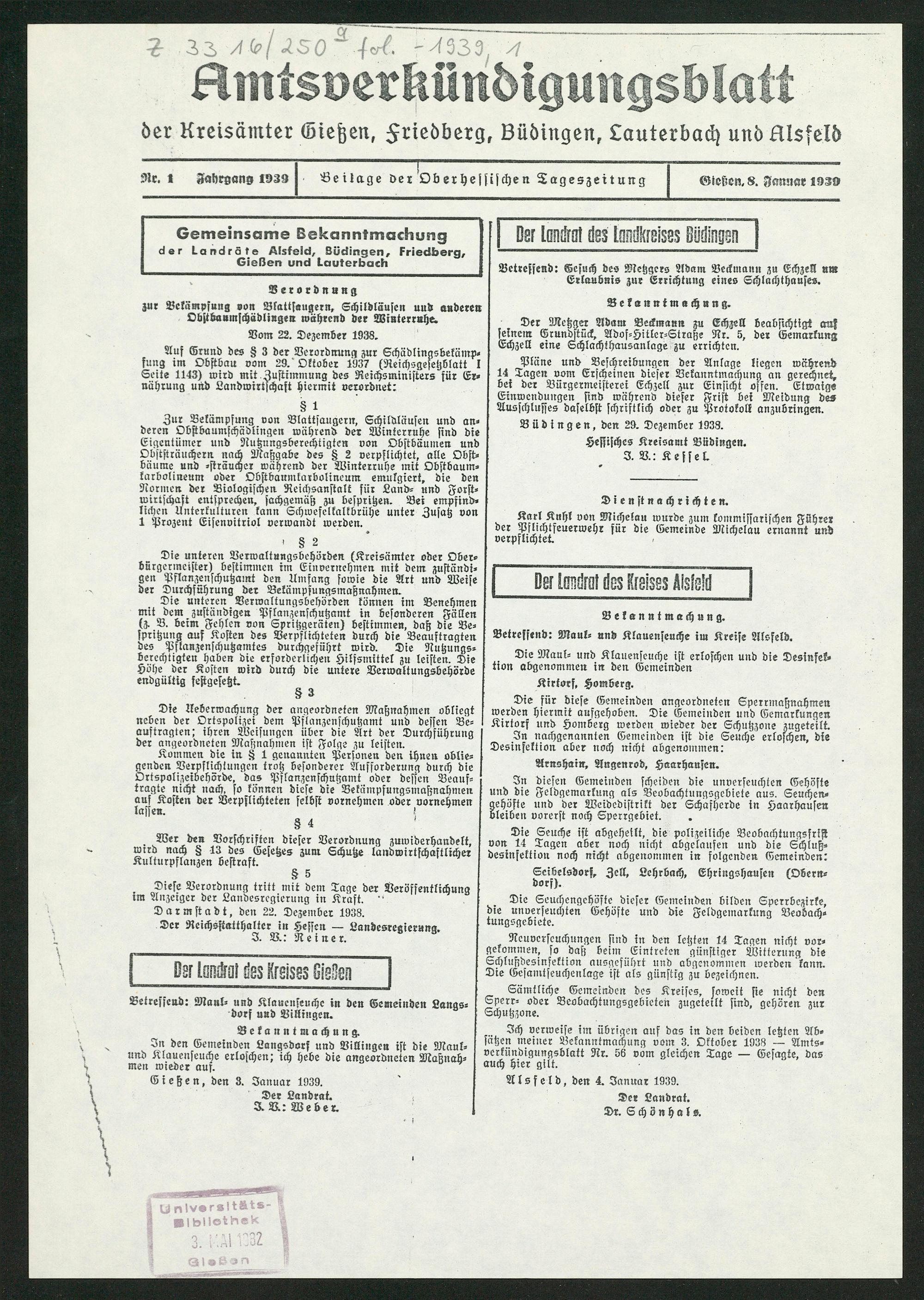 Gießen, den 3. Januar 1939.