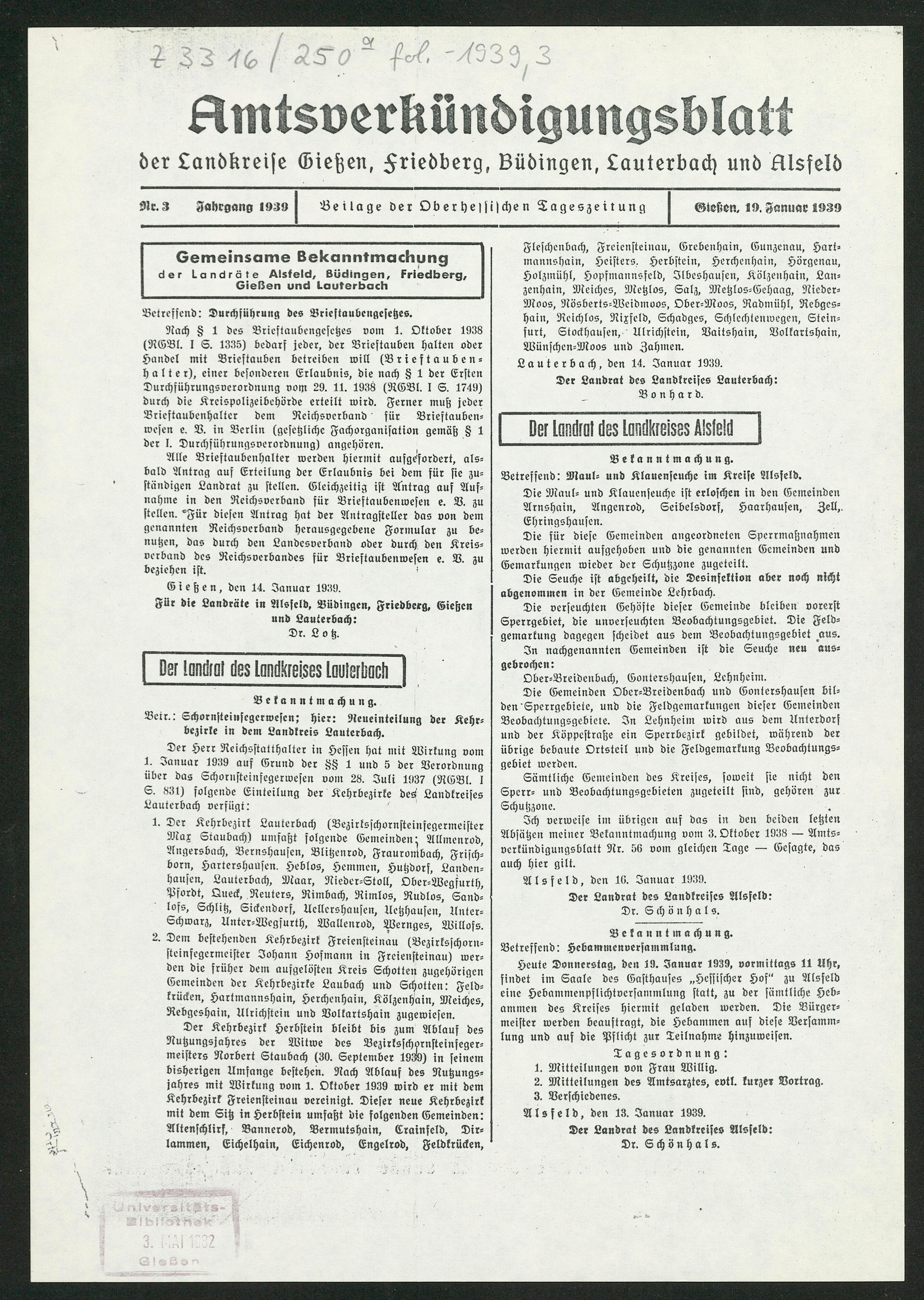 Ich verweise im übrigen auf das in den beiden letzten Absätzen meiner Bekanntmachung vom 3. Oktober 1938 — Amts- verkündigungsblatt Nr. 56 vom gleichen Tage — Gesagte, das auch hier gilt.