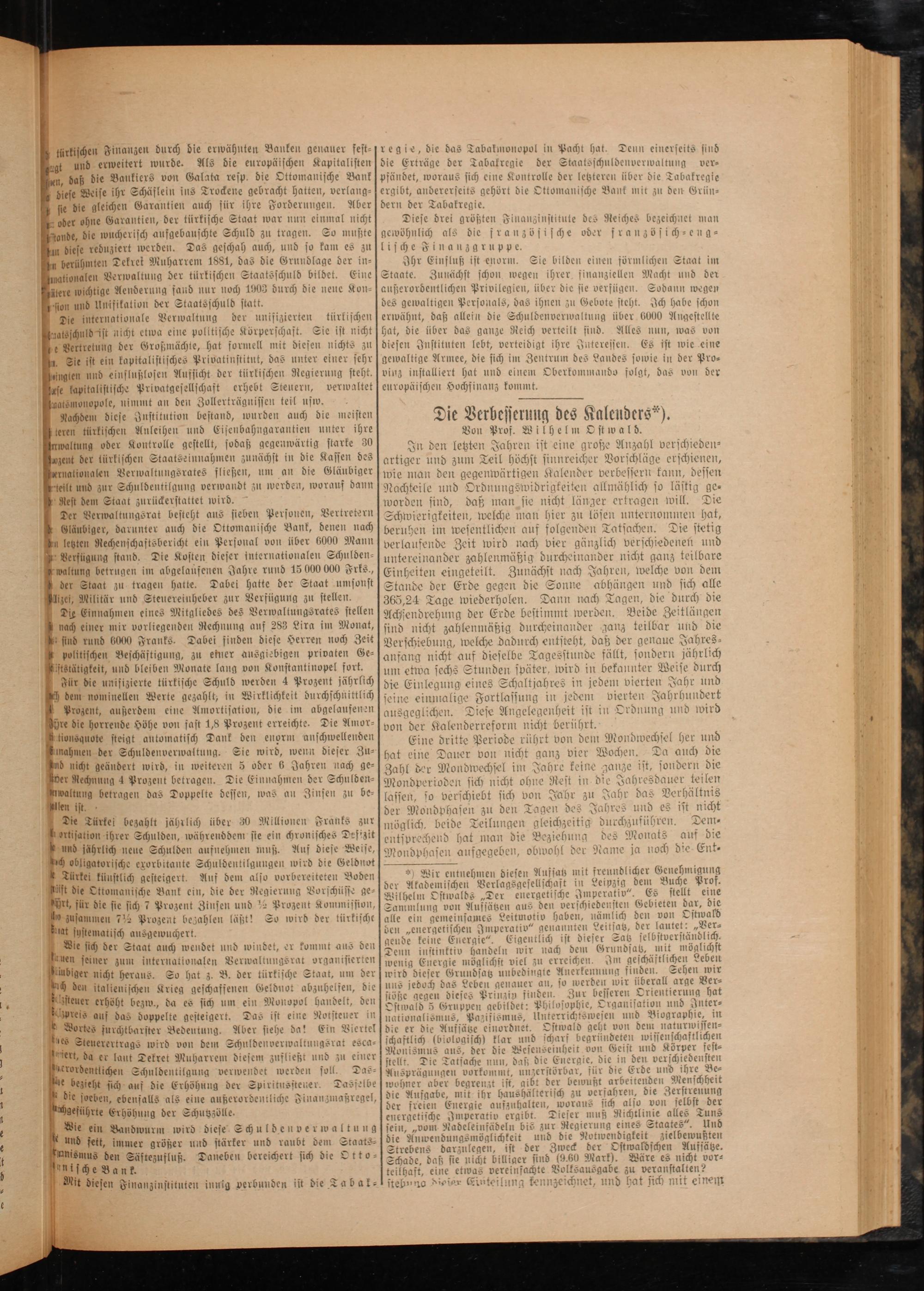 Die Verbesserung des Kalenders“). Von Prof. Wilhelm Ostwald.