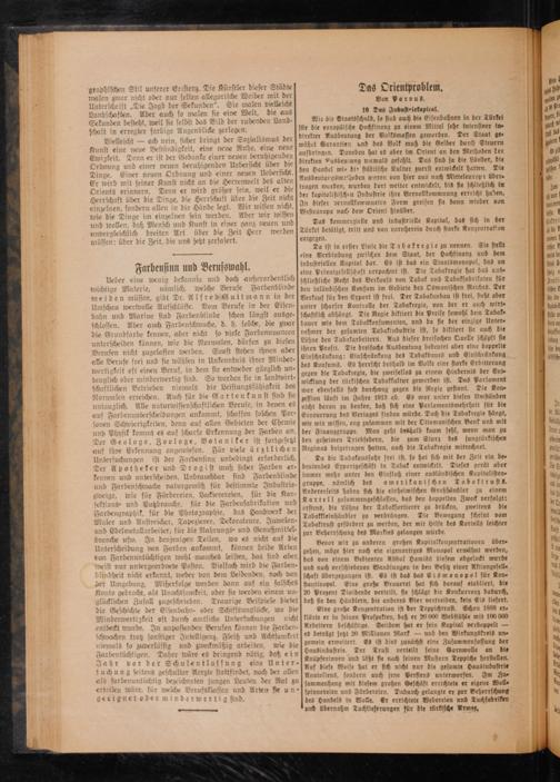 und Putzbranche, für die Farbensabrikation und Farbengraphik, für die Photographie, das Handwerk der Maler und Anstreicher, Tapezierer, Dekorateure, Juwelen⸗ und Edelmetallarbeiter, für die Nahrungs- und Genußmittel br sw. In denjenigen Teilen, wo es nicht auf die Unterscheidung von Farben ankommt, können beide Arten von Farbenuntüchtigen wohl manches leisten, das sind abe meist nur untergeordnete Posten. Vielfach wird die Farben- blindheit nicht erkannt, weder von dem Leidenden, noch von