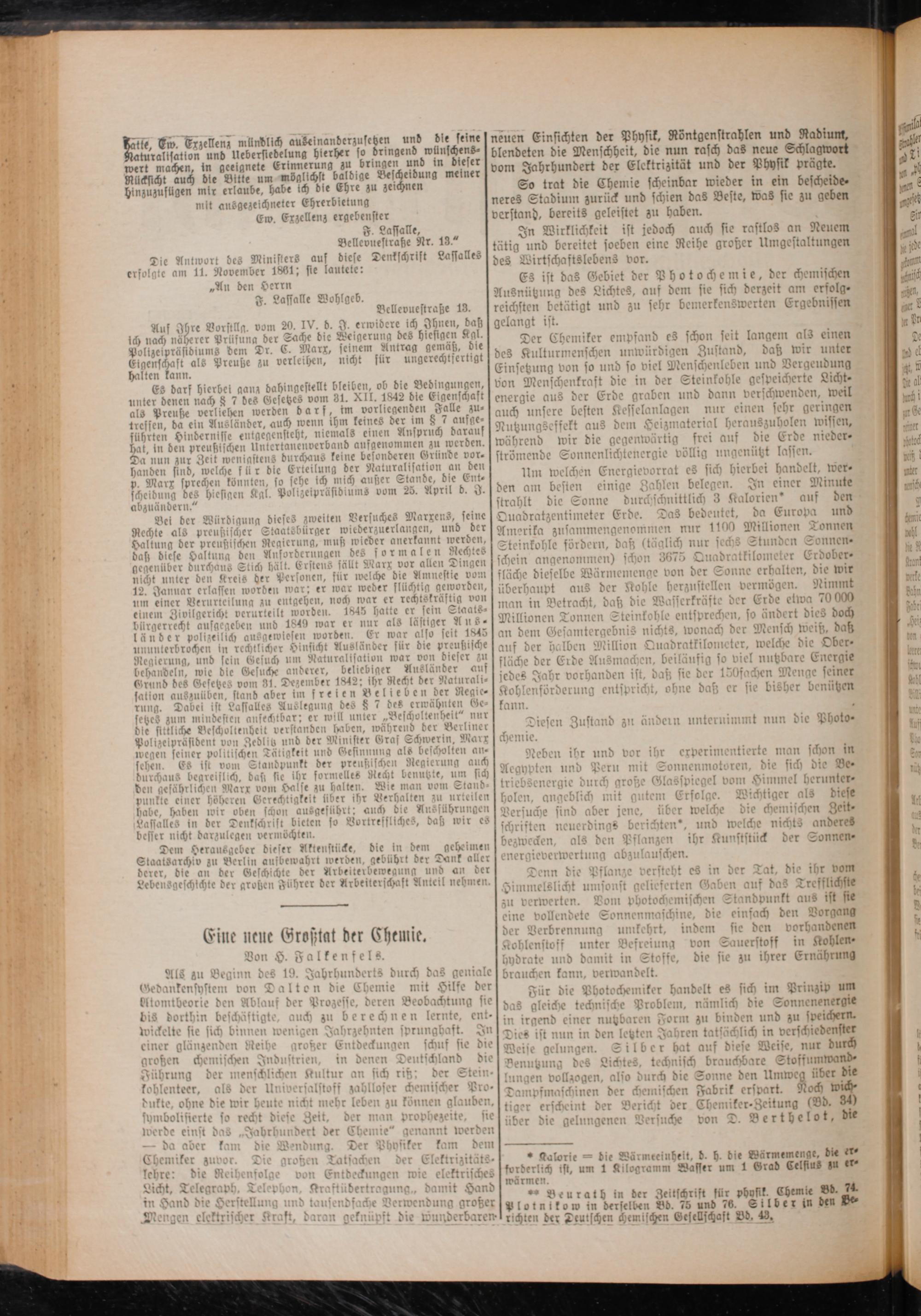 Eine neue Großtat der Chemie. Von H. Falkenfels.