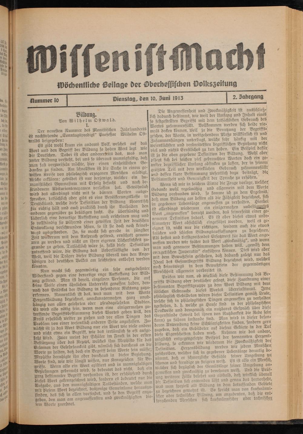 Wöchentliche Beilage der Oberhessischen Dolkszeitung