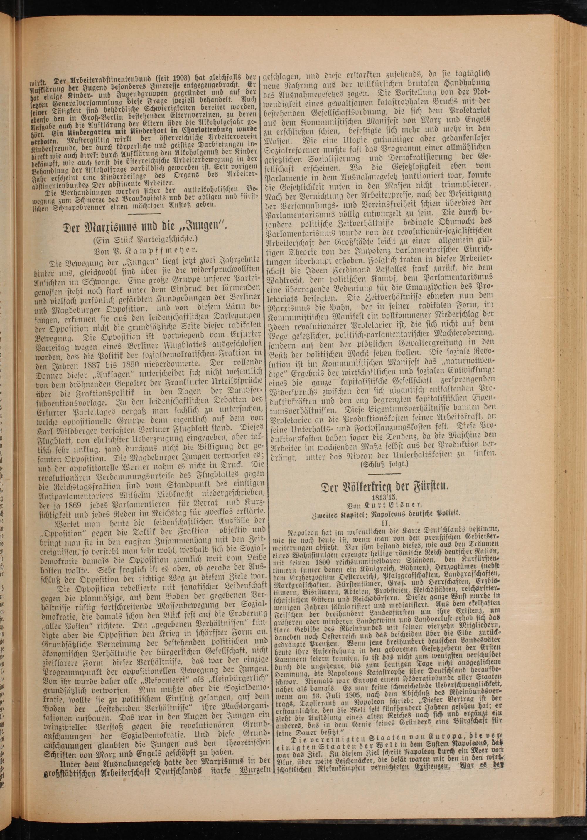 bekämpft, wie auch sonst die österreichische Arbeiterbewegung in der Behandlung der Alkoholfrage vorbildlich geworden ist. Seit vorigem Jahr erscheint eine Kinderbeilage des Organs des Arbeiter-