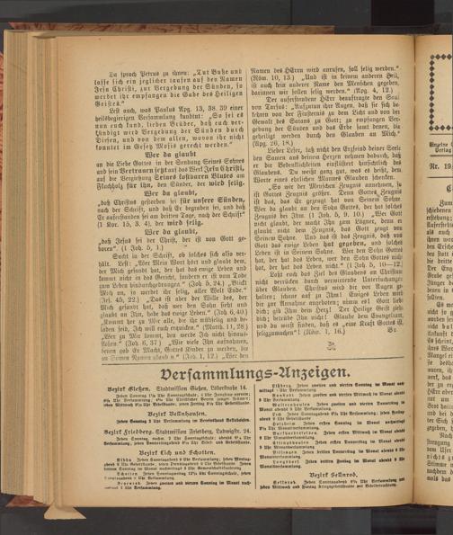 Nidda Jeden Sonntagabend 9 uhr Versammlung: seden Montag; abend 9 Uhr Gebetsstunde, eden Dienstagabend 9 Uhr Bibelstunde. Seen druten Sonntag im Monat nachmittags 3 Uhr Gemeinschaftskonserenz