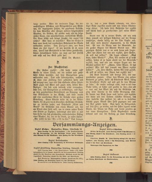 Ein Pastor erzählt:„Ich hatte meine erste Stelle in einem Dorfe, wo ein wüstes und zucht loses Leben herrschte, das dem Evangelium ganz entfremdet war. Das erste Lebenszeichen, nachdem