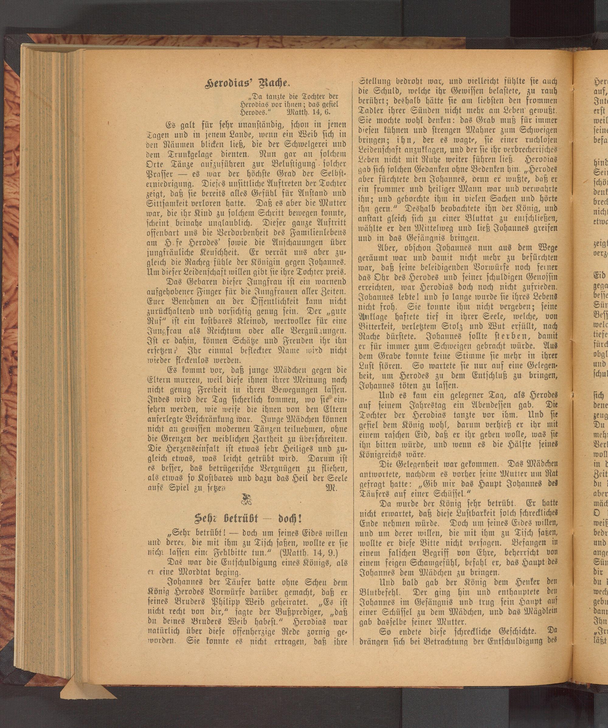 „Sehr betrübt!— doch um seines Eides willen und derer, die mit ihm zu Tisch saßen, wollte er sie nicht lassen eine Fehlbitte tun.“(Matth. 14, 9.)