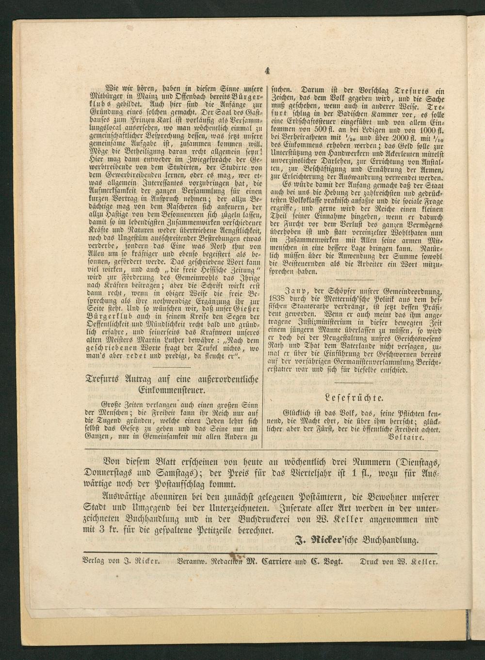 Verlag von J. Ricker. Verantw. Nedaclsn M. Carriere und C. Vogt. Druck von W. Keller.