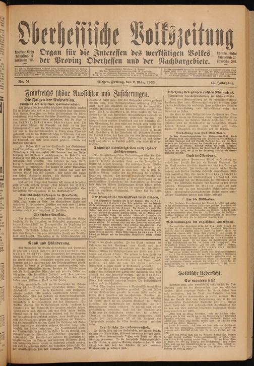 Gießen, Freitag, den 2. März 1923