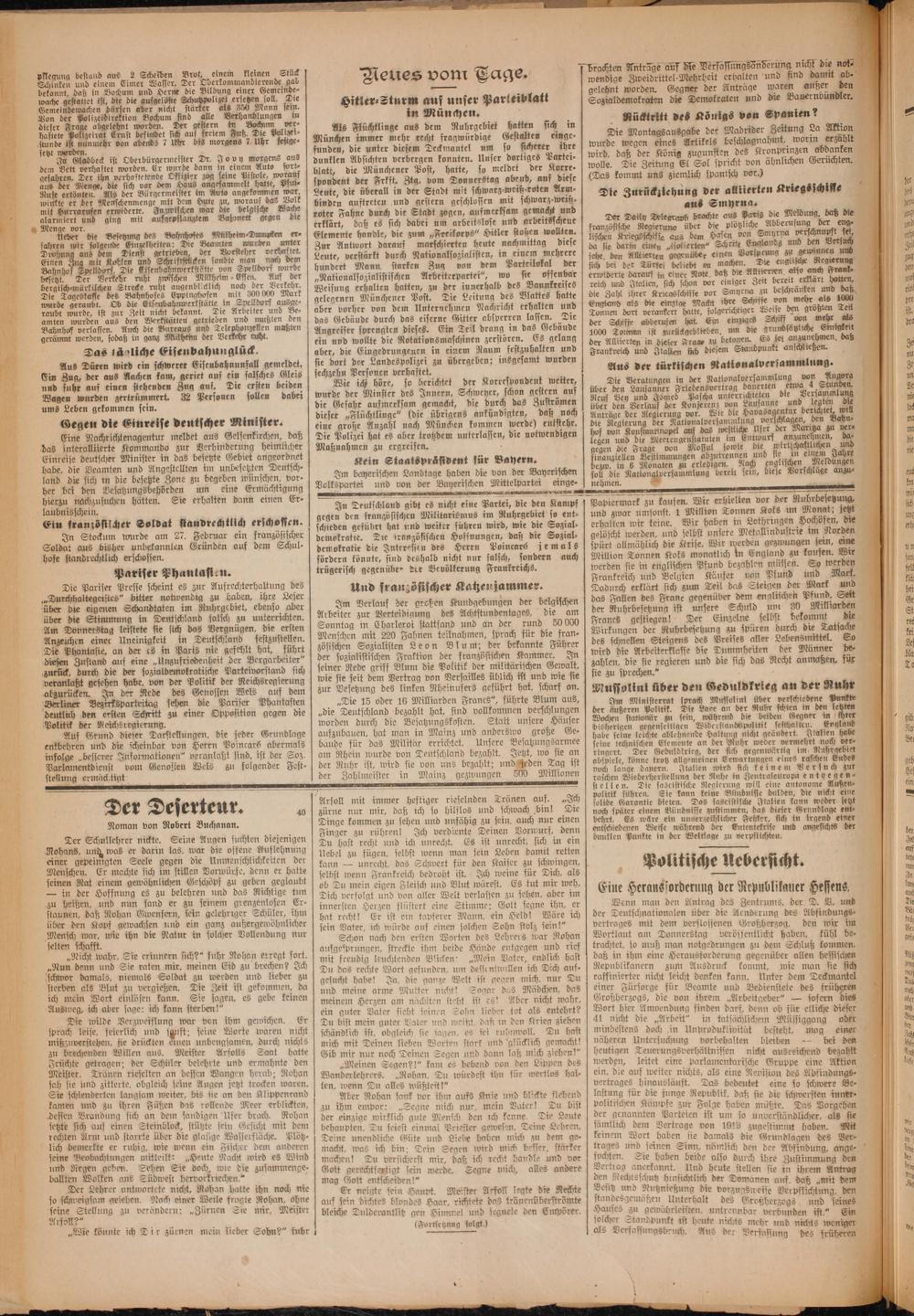 Wie ich höre, so berichtet der Korrespondenk weiter, wurde der Minster des Innern, Schweyer, schon gestern auf die Gefahr aufmerksam gemacht, die durch das Zuströmen dieser„Flüchtlinge“(die übrigens ankündigten, daß noch eine große Anzahl nach München kommen werde) entstehe. Die Polizei hat es aber trotzdem unterlassen, die notwendigen Mafznahmen zu ergreifen.„