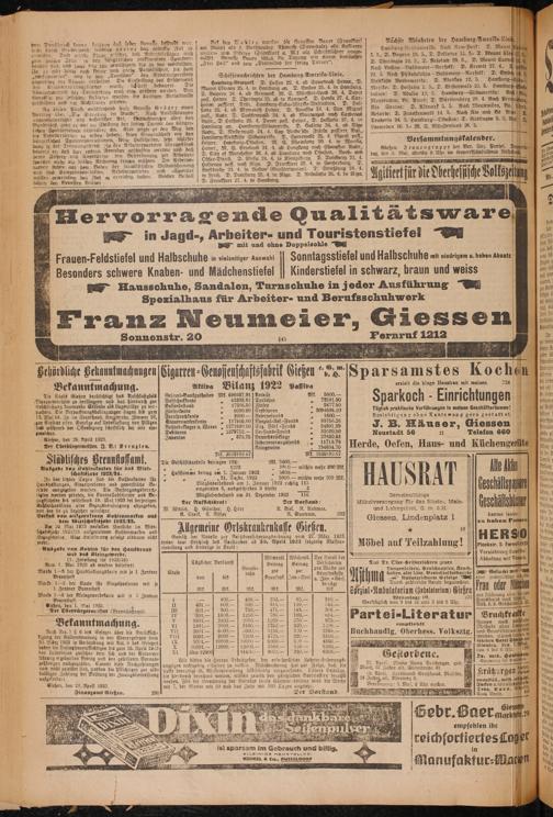 J. B. Häuser, Giessen Neustadt 56 Telefon 860