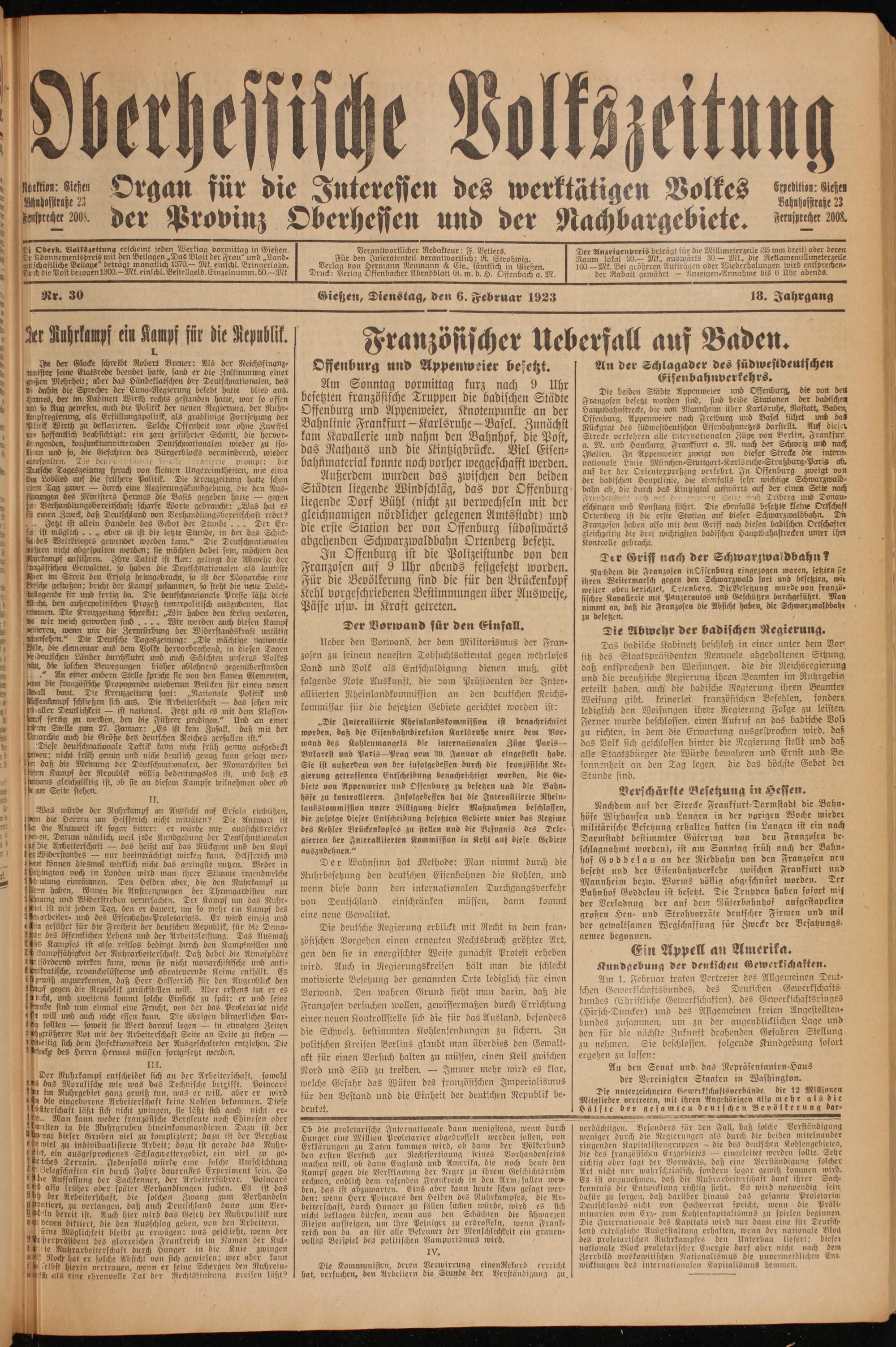 herhessische Volkszeitung Organ für die Interessen des werktätigen Volkes. der Provinz Oberhessen und der Nachbargebiete.