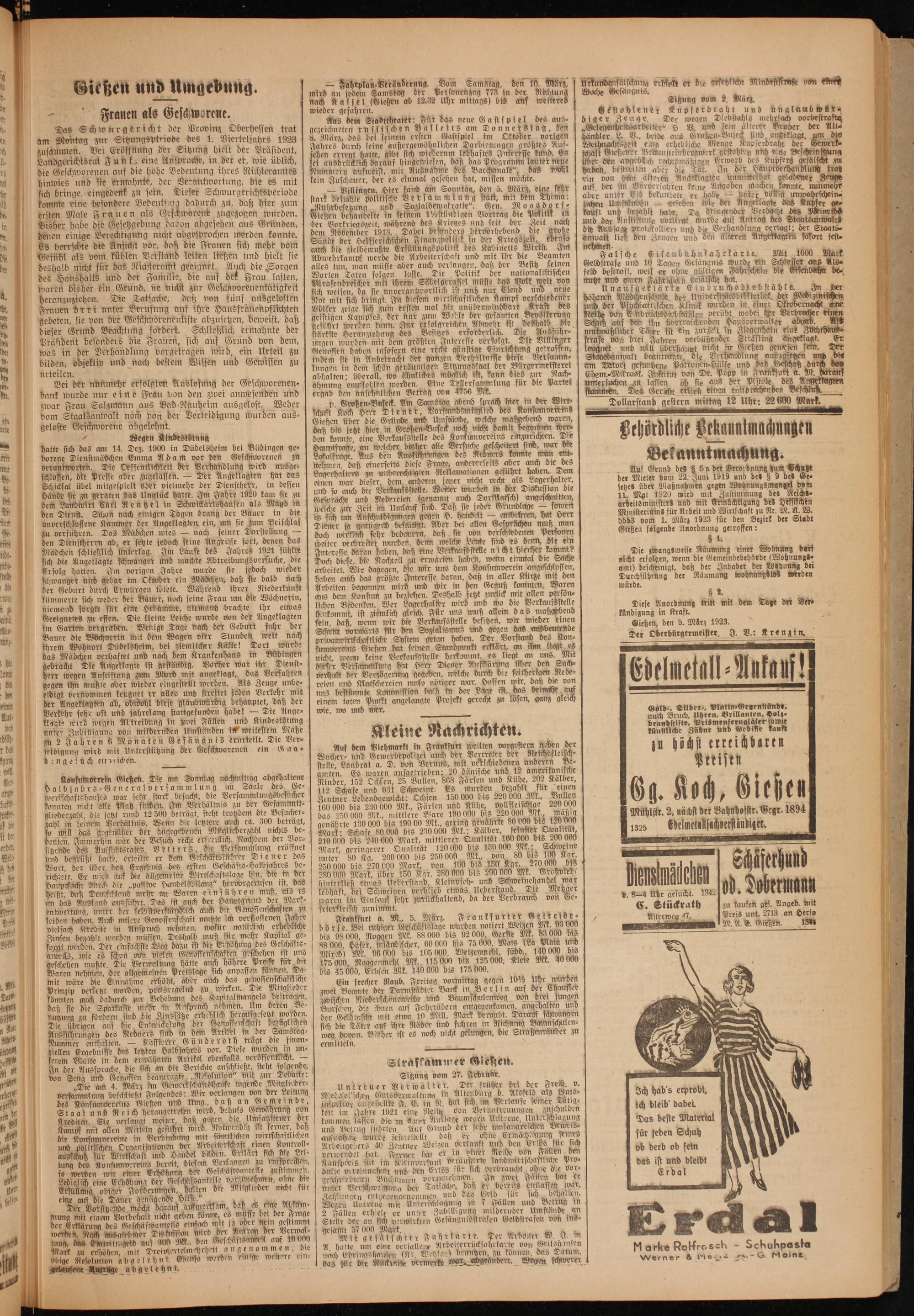 Strafkammer Gießen. Sitzung vom 27. Februr.