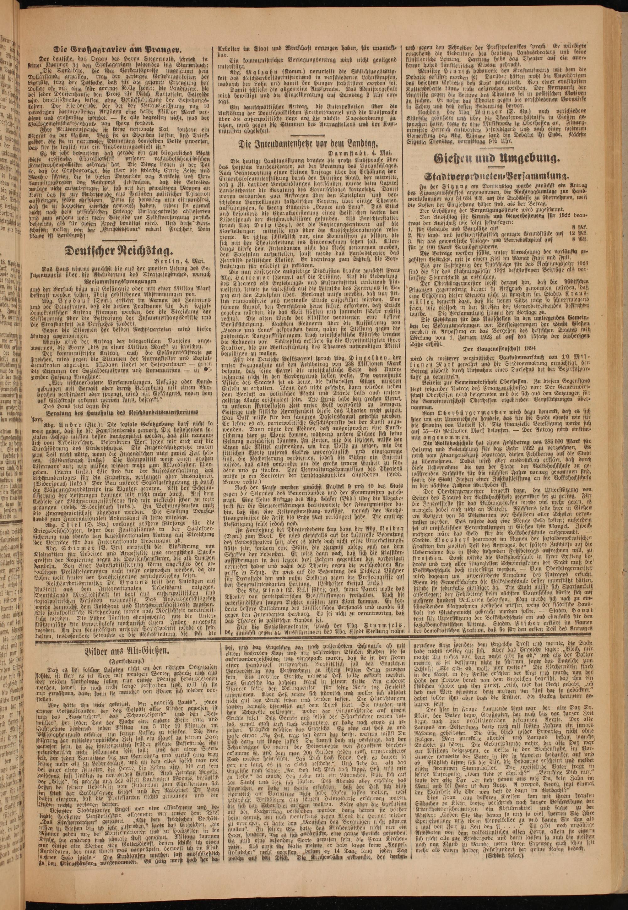 Nachdem der Aba. Wünger(D. Bp) nach versehiedene Wünsche geäußert und über die Theaterverhältnisse in Gießen ge⸗